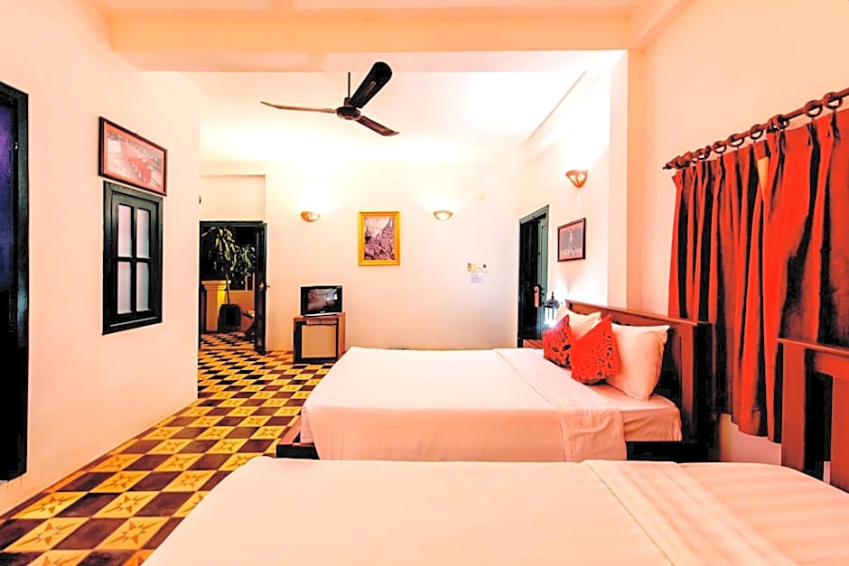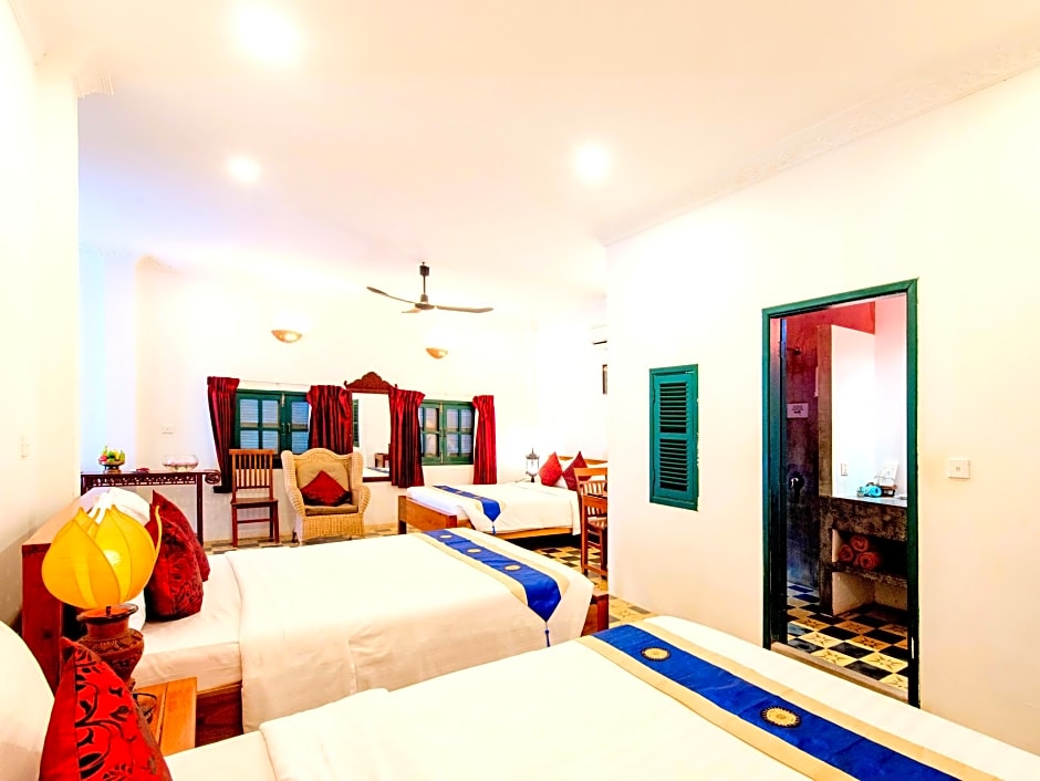 This family room features a private balcony that opens up to views of the swimming pool with a dining table and chair. It is fitted with a mini-bar. The private bathroom includes a hairdryer. In room safety box, working desk, reading lamp are provided.